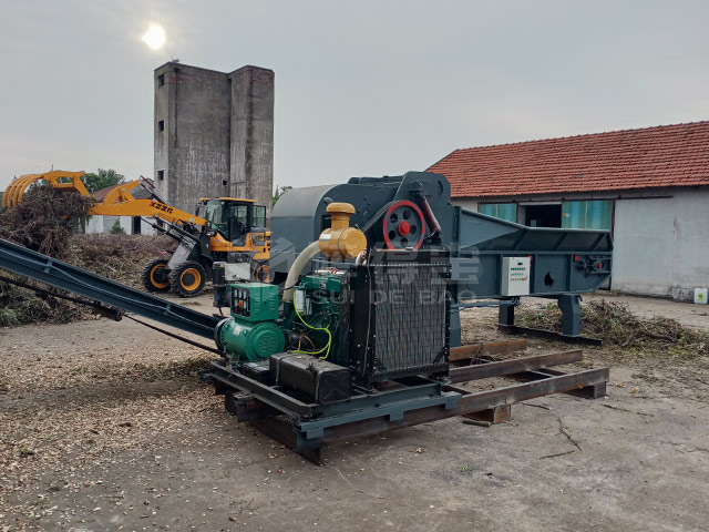 該現場廢舊木材加工廠只采用一臺大型樹枝粉碎機作為加工設備,配以相應輔助設備組成一條廢舊木材處理生產線,該生產線配置少、占地面積小、投資低,適合個人投資用戶開辦。
