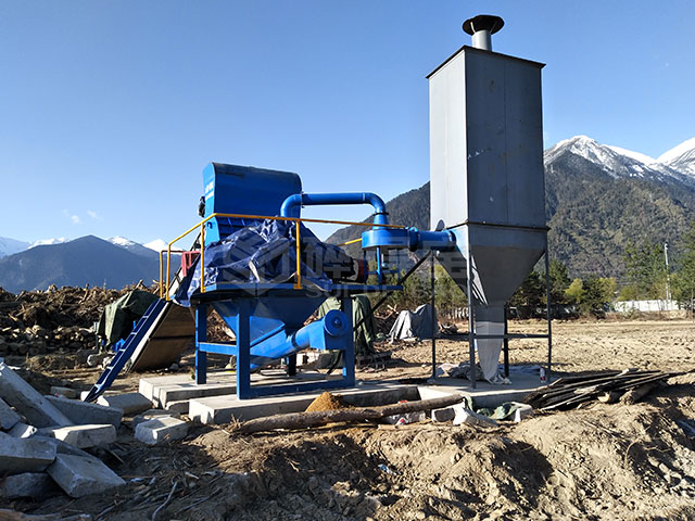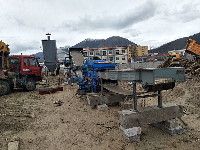 西藏木材加工處理廠只采用一臺木材削片機作為加工設備,配以相應輔助設備組成一條廢舊木材處理生產線,該生產線配置少、占地面積小、投資低,很適合個人投資用戶開辦。